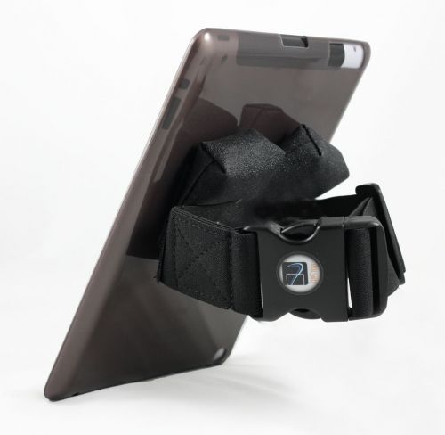 The AppStrap for iPad uses a form fitting gel case to enclose the iPad along with a nylon leg strap and buckle system that attaches to the iPad with its unique Velcro mating design. This unique attachment feature allows for quick repositioning from portrait to landscape viewing, as well as easy removal for stowing or sharing. The AppStrap for iPad comes with a unique tilt pad that can be positioned to enhance the viewing angle and remove annoying glare.