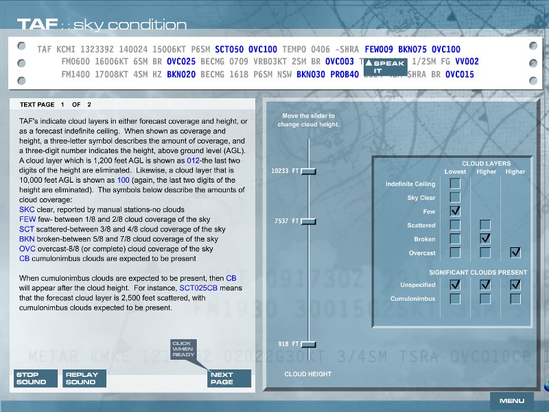 Learn to read METAR's, TAF's, and Pilot Reports in an interactive environment!